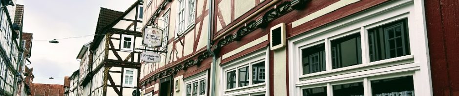 Da wir schon in der Nähe sind, planen wir doch mal einen Kurzbesuch in Eschwege, Kreisstadt in Nordhessen an der Werra und vor allem bekannt für viele historische Fachwerkhäuser. In einem davon haben wir uns für die Nacht eingemietet, im Altstadthotel „Frankfurter Hof“ am alten Steinweg und werden äußerst liebevoll empfangen. Auf dem Flur gibt’s Wasserkocher, Tassen und Kaffee.
