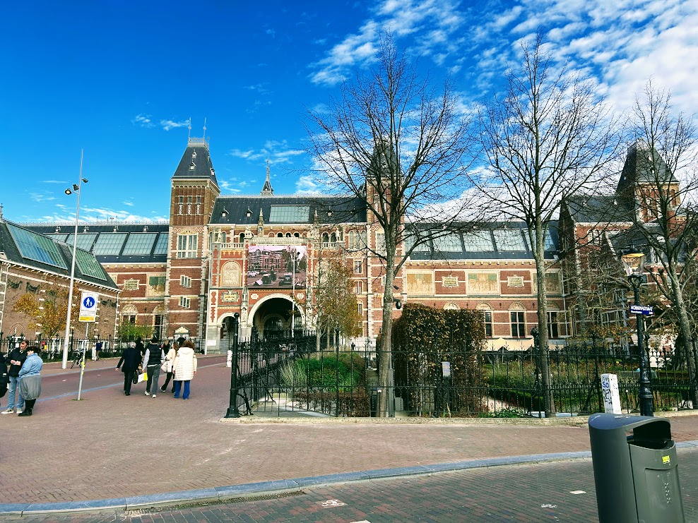 Mi 5. Nov. Das Wetter ist nicht nur schön, sondern sonnig, das heißt dünne Jacken für den Spaziergang zum Bahnhof. Mit dem Sprinter fahren wir in einer halben Stunde nach Amsterdam Centraal und befinden uns mitten in der Metropole. Zuerst schauen wir uns die gigantische Fietsenstalling Anlage an und bummeln dann los zum Blumenmarkt in der Nähe der Herengracht, zur Spiegelgracht und durch das Rijksmuseum zum Museumsplein.