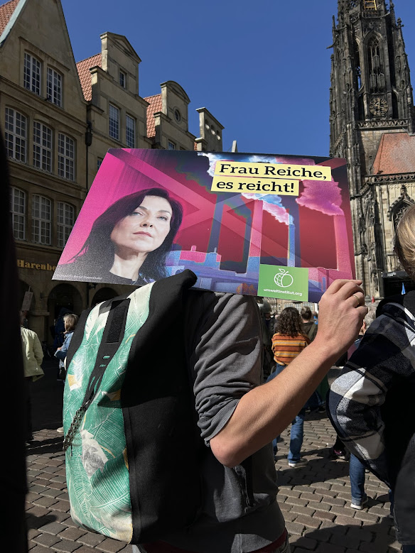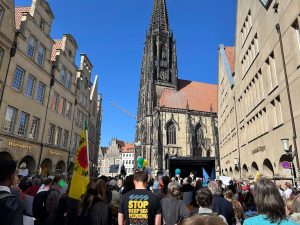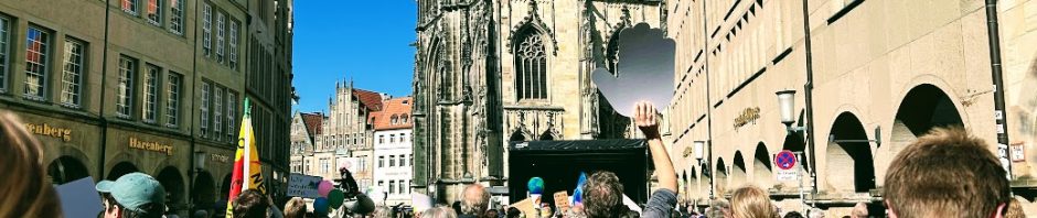 Dass wir schon wieder und immer noch auf die Straße müssen, ist ein Trauerspiel. Die Demonstration in Münster steht unter dem Motto: „Die Rechnung geht auf uns! – Demo gegen die Energiepolitik der Bundesregierung“, veranstaltet von Fridays for Future Münster. Der Protest richtet sich insbesondere gegen Aktionen und Pläne von Katherina Reiche. Hunderte Menschen haben sich auf dem Prinzipalmarkt in Münster versammelt.